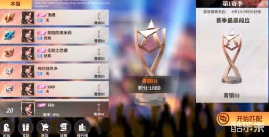 1.匹配机制的季度比赛,随机匹配对手,分为7个段位,青铜III~青铜I,白银,黄金,铂金,初始为青铜III,然后慢慢积累积分往上打,每次的段位提升都可以获得钻石与量子星屑或不稳定熔核。