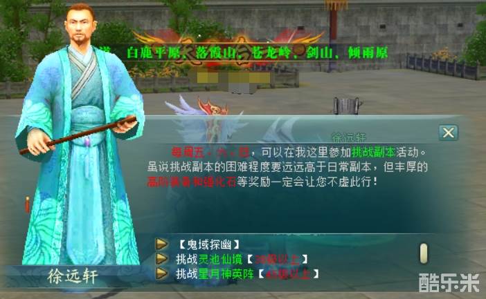 在《剑啸九州》中挑战副本每周五、周六、周日全天开放,其余时间是不能进入的。在活动时间,我们需要到江都的NPC【徐远轩】处进入副本,在挑战副本中击败BOSS的话可以掉落大量的高阶装备和高级强化石、高级解封石等奖励哦~