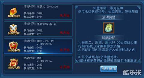 赢最终争霸的仙盟组织,全盟成员会获得持续3天的特有称号——“仙域霸主”,还有不同程度的丰富奖励。顶着“仙盟霸主”的称号在仙域的世界面漫步,岂不是很拉风,快来畅玩吧!