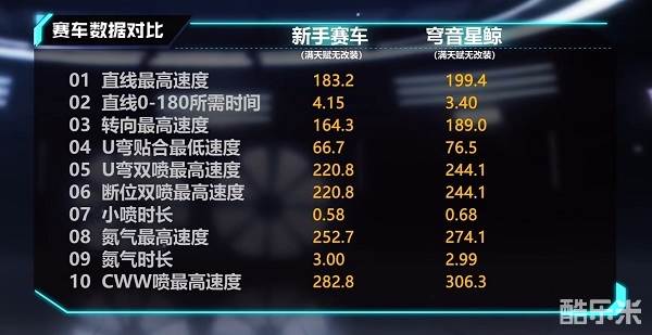 从六维性能图来看,穹音星鲸各项属性速度、延续和转向方面非常突出。驾驶着是赛道上蓝色深海巨兽,赛道霸主。