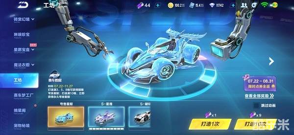 A车穹音星鲸可以通过寻宝-工坊中打造获得,打造满3、5、8 格可获得期限穹音星鲸;打造满10格即可获得穹音星鲸(永久)。