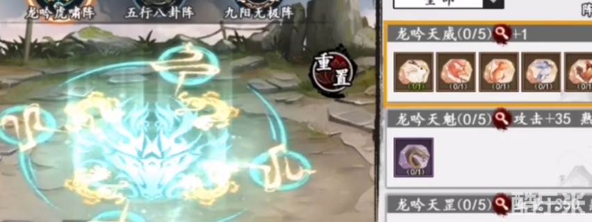 阵法该如何选择,建议配合相应的职业队伍。在阵法系统中,我们可以明确看到系统给的几个阵法,而旁边的是每个阵法需要激活的不同属性。按照不同的加成分类,共有11类属性需要激活并升级,而且每类属性又分了很多的子属性,就比如以龙吟虎啸镇政法委丽11项大属性下面共包含了200条左右的子属性。