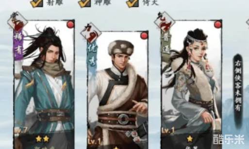 这个游戏中侠客是有阵营和职业区分的,在新手教程的过程中玩家会获取到固定的三个角色。然后在连续登陆七日,和在线达到指定时长也能分别获取到一个角色。这几个角色也是玩家在前期对战的时候主要用使用的角色。