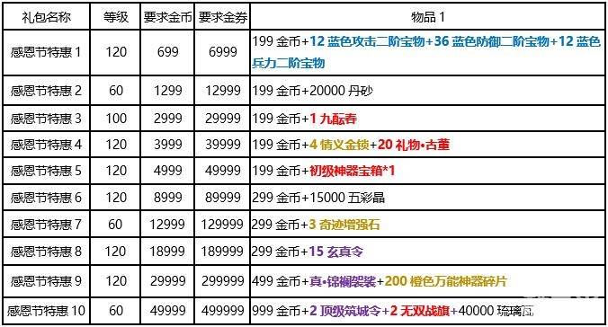 【活动内容】感恩节限购,风云福利超值特惠限购开启,全场最低折扣,买到就是赚,错过悔终生,主公们快来瞧瞧吧!