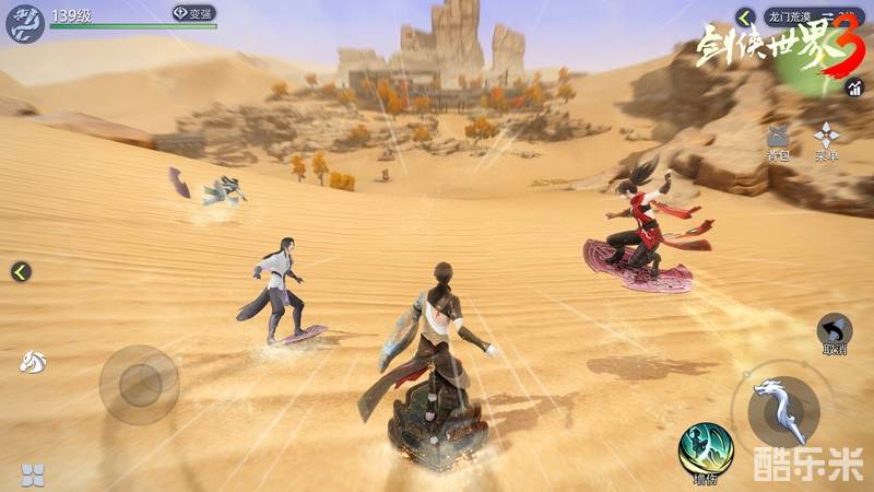 这次《剑侠世界3》更新的一大亮点就是龙门荒漠地图,可以说质感满满。利用前沿3D引擎,完美还原了中国著名景点洛阳龙门及其周边地貌。还有经典影视人文场景,像龙门客栈、千佛窟,也被复现到了游戏之中,搭配游戏的实时天气系统,可谓是既能够欣赏到“大漠孤烟直”的诗意风景,又能体会带有满满武侠元素的人文景观。