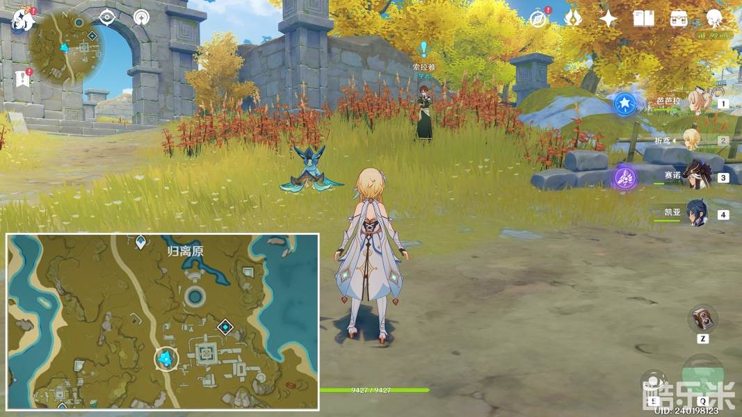 1,来到归离原遗迹的西侧,与索拉雅对话,接取任务《宝藏归离》