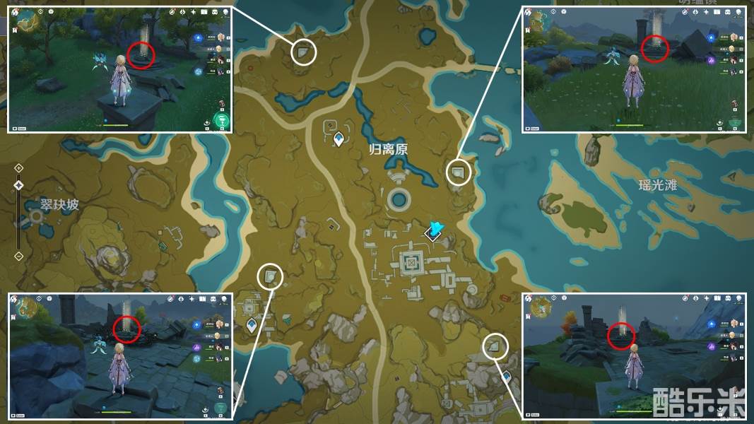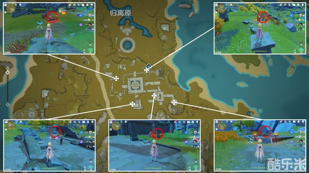 7,之后我们前往归离原的四周,寻找四个原盘,点位如下