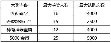 每次认购均可随机获得一份认购奖励,参与认购的玩家均有机会获得大奖奖励;