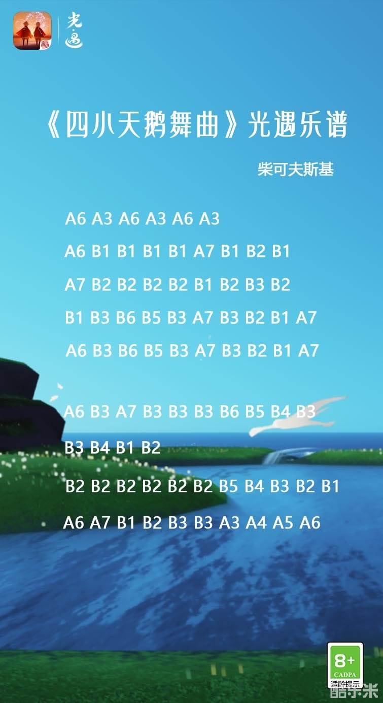 光遇如何演奏四小天鹅舞曲?光遇游戏里的玩法是非常多样的,不但可以欣赏各种美丽的风景,还可以弹奏好听的曲子,比如小编今天要为大家带来的四小天鹅舞曲,很多玩家都问,怎么弹奏这首舞曲呢?小编今天就为大家分享一下舞曲的谱子!