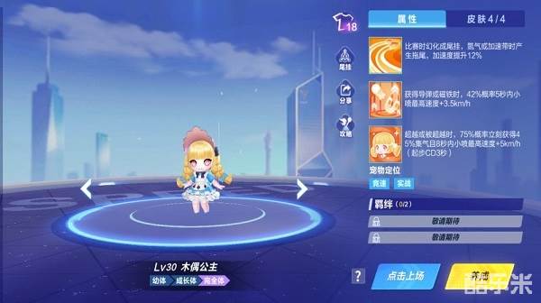 木偶公主乖巧可爱,技能在竞速赛实战中也非常实用,这样充满浪漫童话气息的萌宠你爱了吗?喜欢木偶公主的车手千万不要错过!
