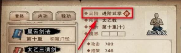 然后就是太乙剑武学的进阶了,首先加入太乙门派,然后在“武功”这里选中太乙门派的武学,比如两仪剑法、太乙长拳、星云剑法、太乙三清剑等,然后点击上面的修炼就可以了。