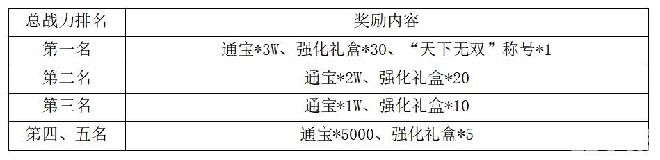 在角色达到50-60级之后可以通过强化装备镶嵌灵石以及提升人物经脉等级、星盘等级等方式来提高角色战力值。新服活动期间战力值达到对应的排名可以获得大量通宝以及大量强化礼盒奖励,第一名可以获得独一无二的“天下无敌”永久称号哦!