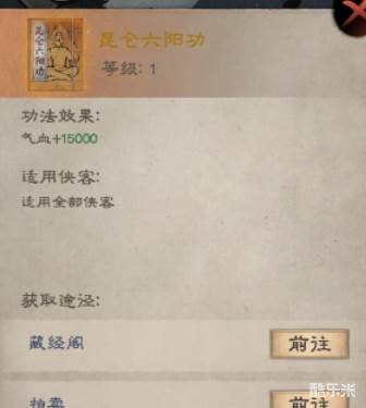 当大家得到了昆仑六阳功之后,就可以直接进入到侠客的培养页面当中,选择将功法搭配到合适的角色身上即可。后期大家可以通过升级功法来进一步提升属性加成,角色的整体战斗能力也会很快发生改变。