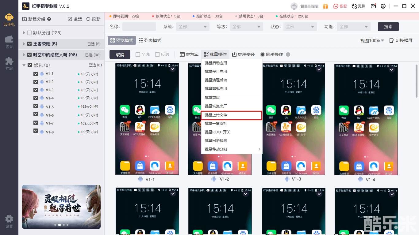 挂机刷装备刷宝石,全天云端在线挂机,断网关机也能持续运行游戏;同时还能支持无限多开同步操作练小号,当于只需操作一个一个号,一天任务几小时就能全部搞定,省去多开养号的重复手动操作,让我们节省更多时间、操作和硬件成本,让多开练级养号,搬砖赚钱事半功倍!
