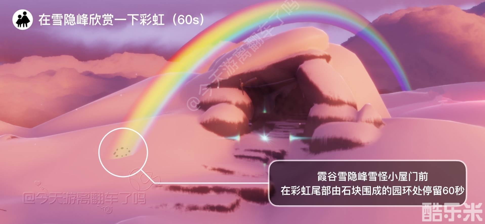 光遇雪隐峰看彩虹任务如何完成?光遇缤纷飞行日开始之后,每天都会有同步任务等待玩家去完成,今天酷乐米小编要带给大家的是雪隐峰看彩虹的任务,很多玩不知道具体应该怎么完成,小编接下来就为大家带来详细的完成攻略,一起了解一下吧。
