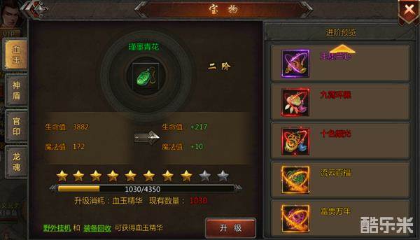 血玉是《传奇盛世》当中,专门性地为人物附加生命值和魔法值属性的宝物,高阶的血玉所提供的生命值和魔法值加成、是低阶血玉的数倍!生命值作为人物承受伤害的一种能力,其重要性可想而知,而人物提高输出更是离不开技能释放,自然也少不了大量的魔法值的。