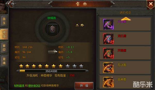神盾是《传奇盛世》当中,专门为人物附加物理防御、魔法防御和韧性三项属性加成的宝物。这三种属性,无一不是重要的防御类属性,倘若任何一项属性值较低,玩家们都是有可能承受住对手成吨的爆炸伤害的!
