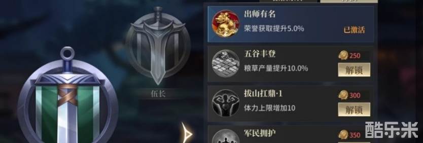 完成军衔激活升级后,即可用荣誉币解锁对应军衔特权,军衔可用于激活特权与武将加成效果