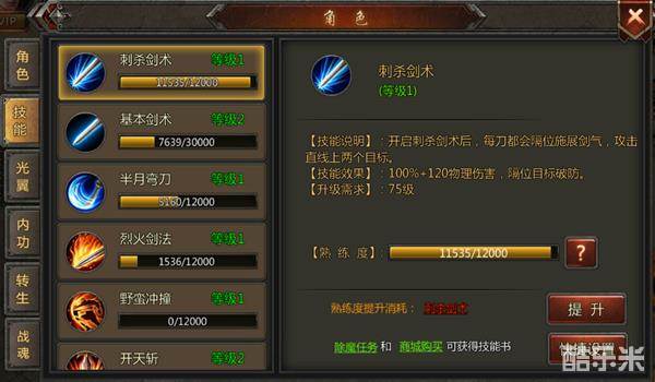 第一种是通过击杀怪物获取,每使用一次技能就能获得1点熟练度;
