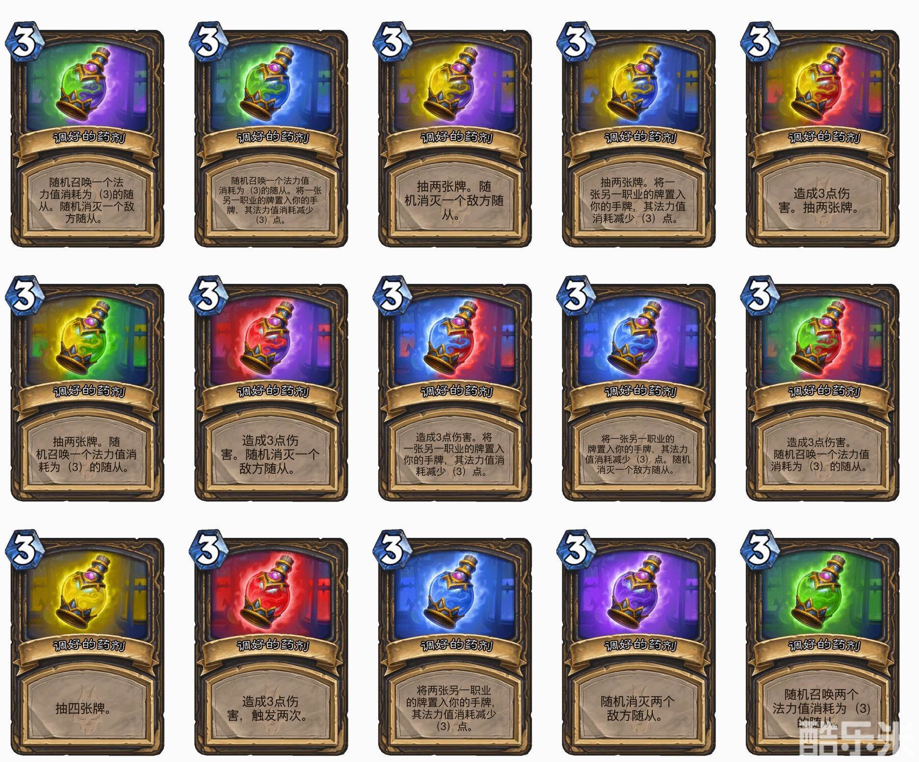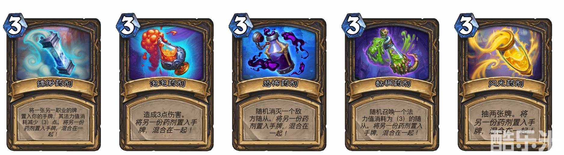 3费衍生物法术,可两两组合变为一张“调好的药剂”(在手牌中自动组合),兼具两种效果且仍为3费