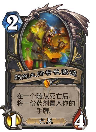 在一个随从死亡后,将一份药剂置入你的手牌。