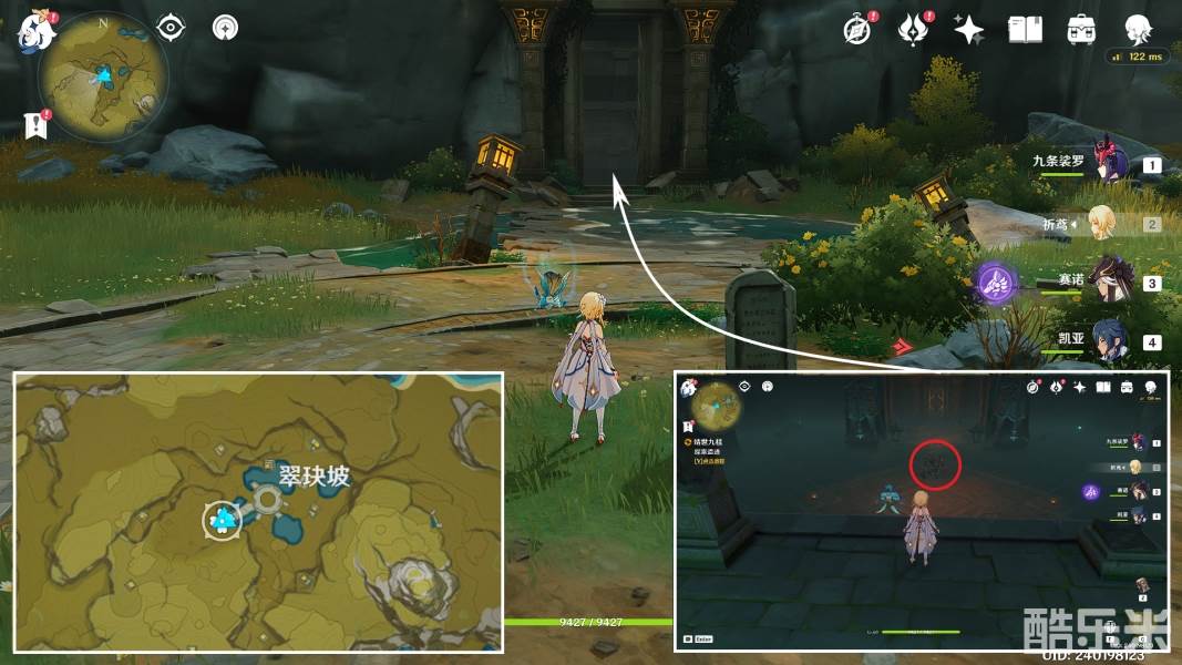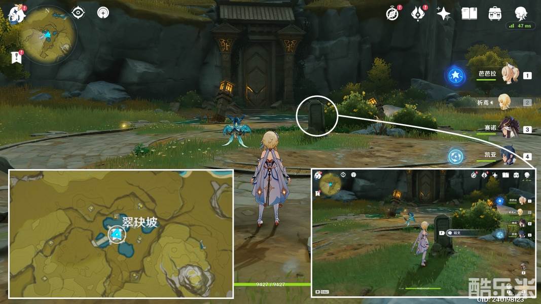 1,我们先来到翠玦坡遗迹处,与中间的石碑交互,接取任务《靖世九柱》