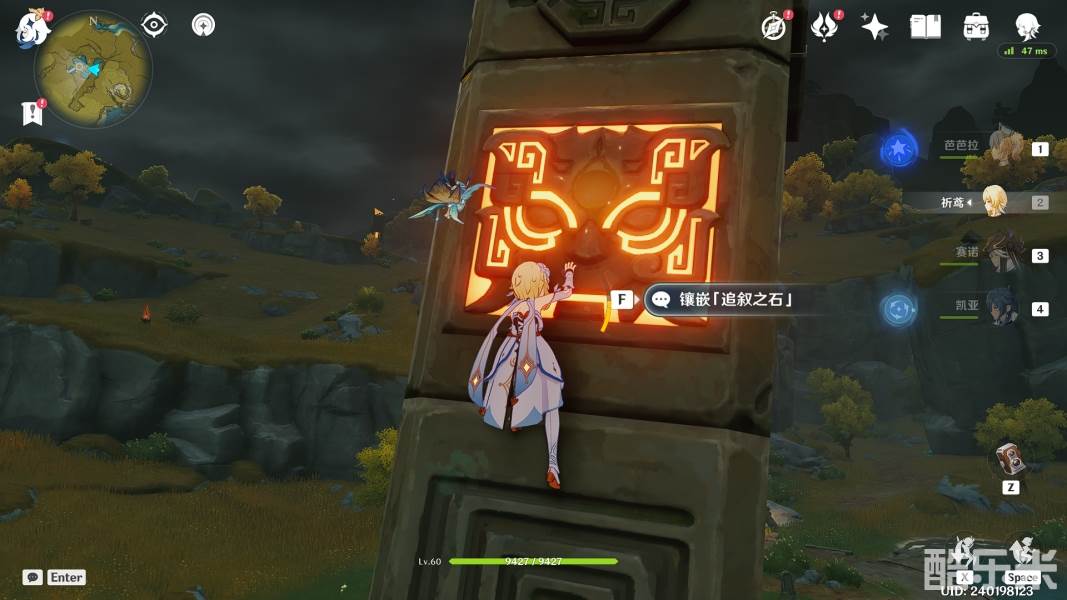 3,爬上石柱,可以找到一处镶嵌追述之石的地方(偏下处),与之交互即可
