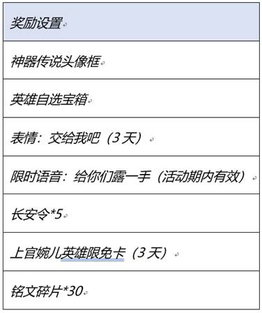 神器传说头像框、英雄自选宝箱*1、表情-交给我吧(3天)*1,限时语音,长安令等