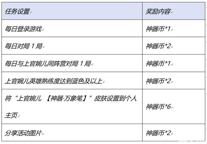2、拥有上官婉儿 【神器·万象笔】皮肤可领取神器传说专属奖励:
