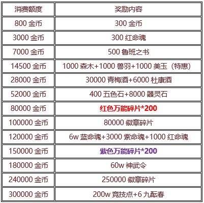 【活动内容】活动期间,游戏内累计消费达到对应金币,即可获得对应奖励;所有商品绝对超值,不信你自己看。相中哪个千万别手软!因为一犹豫也许就不知道何时能再见了。