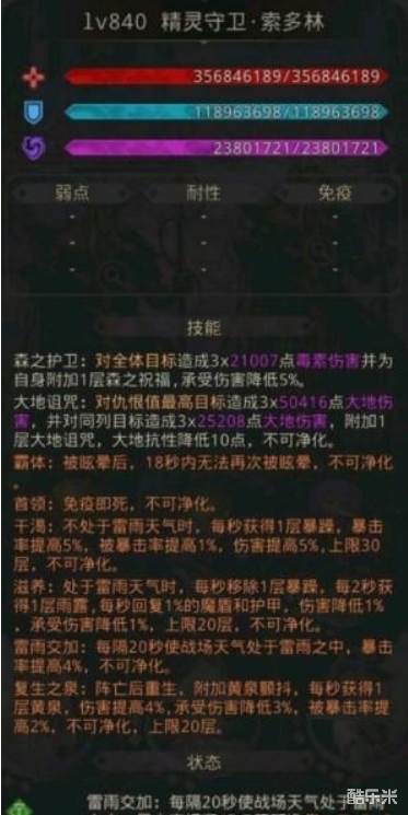 30.增强版秘境14的最终BOSS。高练度可以直接飞沙,直接攒好剑意直接秒两条命。低练度推荐带毒,卡在50血左右爆发打掉第一命,后面也是如此,时间需要卡一下。(我的号高练度,所以只能给出建议。)注意自身的抗性,扛不住永望吼一下。