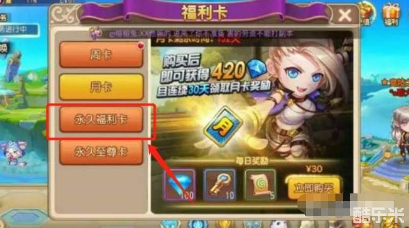 弹弹岛2永久福利卡怎么获得?弹弹岛2游戏中的永久福利卡获得的具体方法就是需要玩家在游戏中的福利卡界面点击永久福利卡,在永久福利卡中进行购买就可以成功的获取到了。