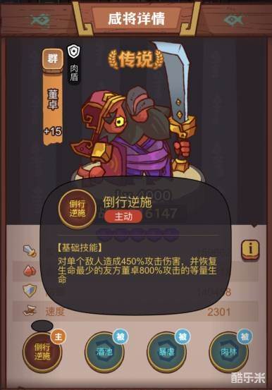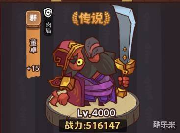 董卓:董卓是群雄传说品质的咸将,拥有较强的防御,对单个敌人可造成大量伤害。