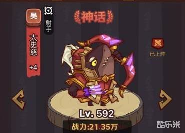 太史慈:太史慈是神话品质的咸将,射手位置,拥有超高的输出能力,战斗过程中可使自身攻击,暴击和生命都得到大幅度提升。