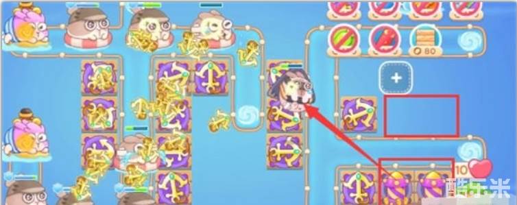 5、我们第四轮出礼物,兔子走的很紧,减速炮塔最好放几个。