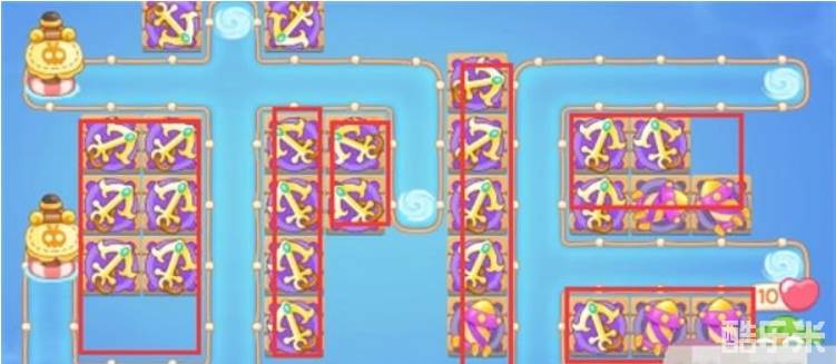 1、这关自带烟花和星星,有船锚、魔法球或多重箭即可开打。