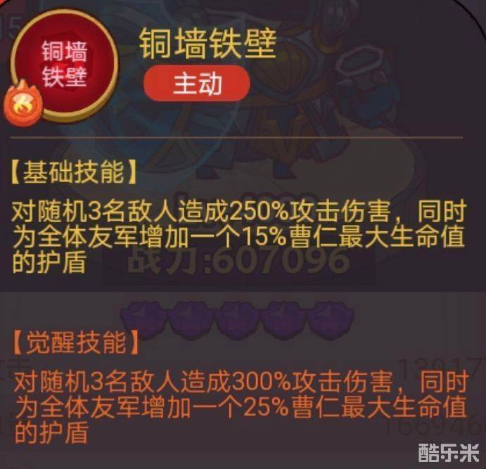 主要输出:曹仁是这支队伍的主力,擅长使用肉盾的玩家可以着重培养,我们可以在资源稀缺的情况下主要对曹仁的装备进行升级,以及对曹仁本人进行提升。