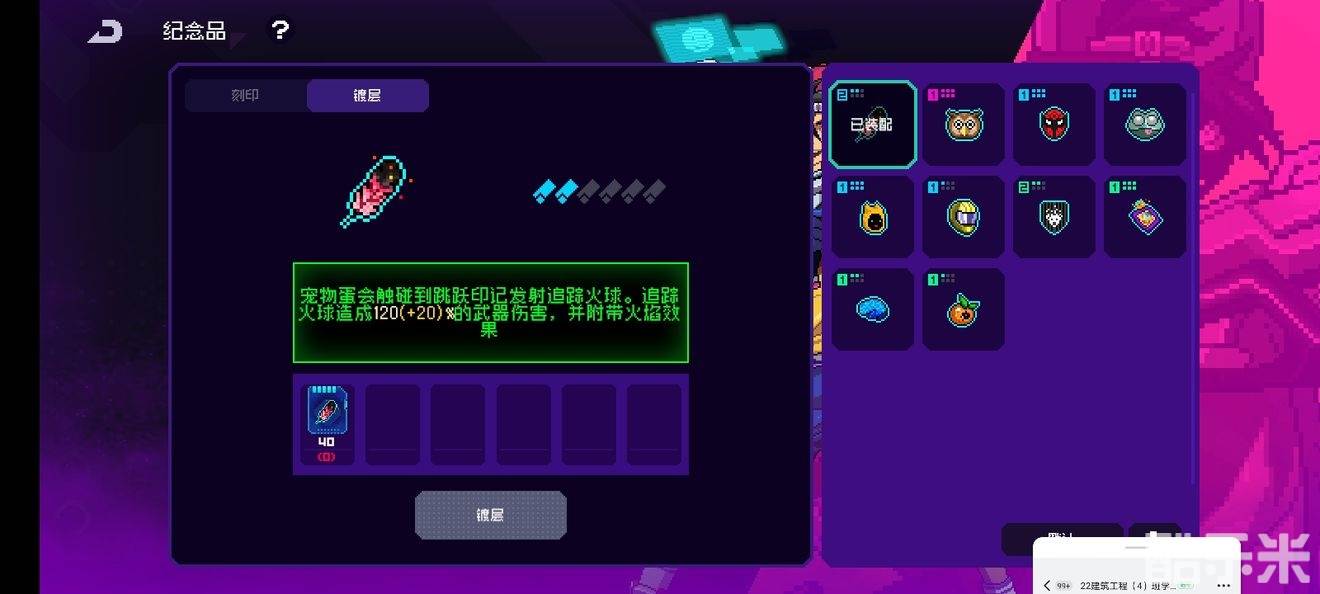 就是触发条件会有些苛刻,在跳跃高度变高但是次数不多的时候会难搞点,但是前后期还可以,追踪的火系伤害弹幕欸,很稀有的好吧。