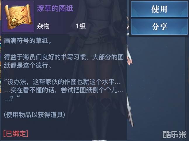 潦草的图纸使用后可以获得物品,打开后是一张初级战斗图纸。