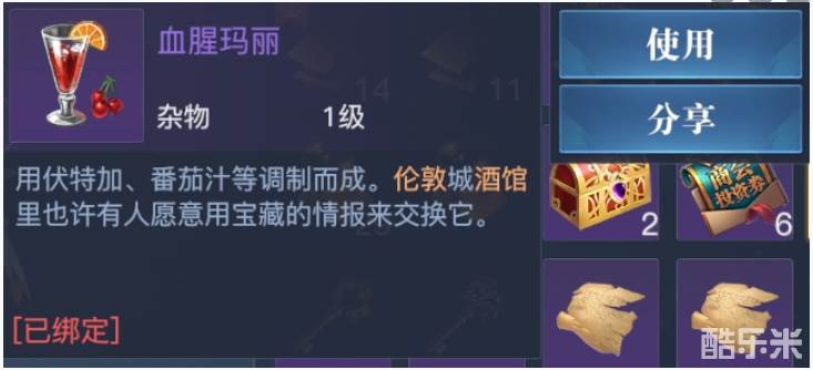 (如果只是在背包中点击使用血腥玛丽,其实是没有效果的,需要与酒馆内的NPC肯维进行对话才能触发任务。)