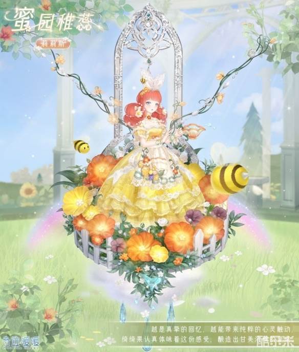 【蜜园稚蕊】含正常姿势与特殊姿势,全新妆容“绵心暖意”,特殊姿势上衣“蜜园稚蕊”,精美可移动摆件“霓光盛景”、“梦寐苗圃”。