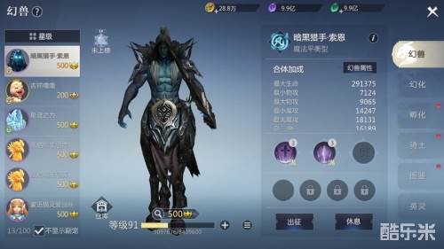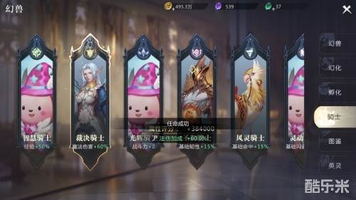 在骑士页面中,神选者可以将已有的幻兽进行骑士任命,从而获得属性加成。