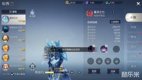 除了设置出征外,神选者还可以将幻兽设置为合体状态,可通过幻兽面板或者主界面幻兽栏进行设置。
