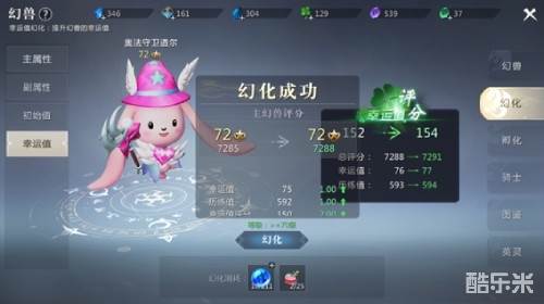 幸运值是幻兽的一项特殊属性,有助于提升幻兽评分,当主幻兽满足幻化条件后,可以通过消耗对应的材料进行幻化。