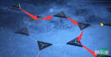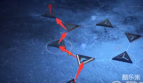 5、然后向左上方向移动去往白色图标,路线如图所示。