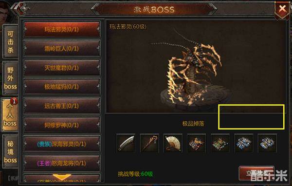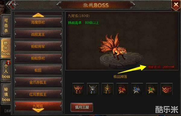在传奇盛世中,有很多BOSS,比如个人BOSS,野外BOSS、秘境BOSS等。不停的boss分布在不同的区域,且难度也不同。所以获得的奖励也会不同。