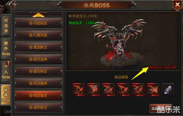 那么这么多的BOSS当然不会同时出现了。每个BOSS都有自己的刷新时间的和刷新地点的。