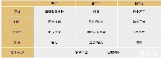 以酒馆西奥多拉为核心输出,搭配凯撒和君士坦丁为辅助,帮助其净化沉默并提高属性,提供减伤、治疗、技能的发动概率提升以及伤害增益等效果。主要联动酒馆西奥多拉的自带技能,搭配形成单核准备减伤流,同时通过技能效果叠加到西奥多拉身上,造成巨量伤害。