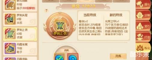 讲完基础的,讲讲装备的特殊属性。在游戏的炼化中可以对装备进行更深层次的锻造,除了可以洗炼装备的基础属性加成以外,【附加】和【特技】也是非常重要的一点。附加可以提供百分比加成,这个在前期效果可能不是那么突出,但是越到后期,他就越强势。特技是装备给角色提供的特色怒气技能,一个好的怒气技能能让你在对战中打出意想不到的效果。
