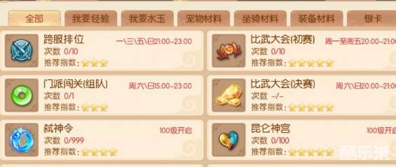 目前游戏中有【装备副本】【宠物副本】【法宝副本】等多种可以获取重要材料的副本。此外还有昆仑神宫,玄黄塔等富有挑战性的副本开放(难度比较大,强烈建议组队前往)